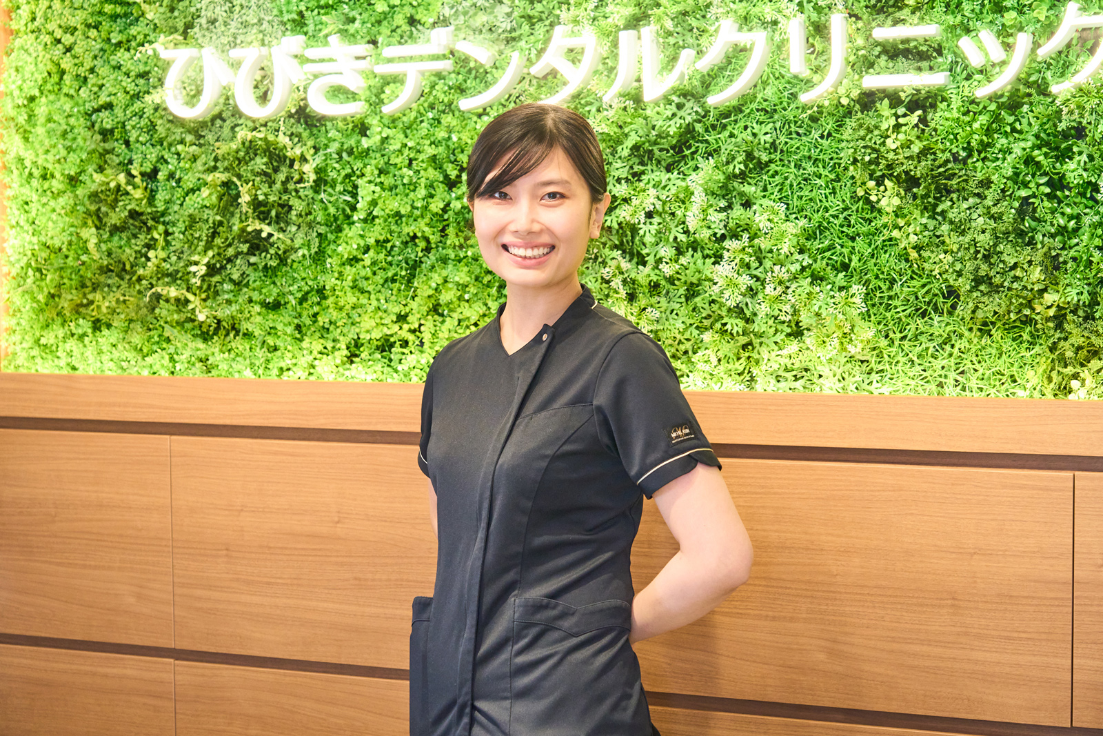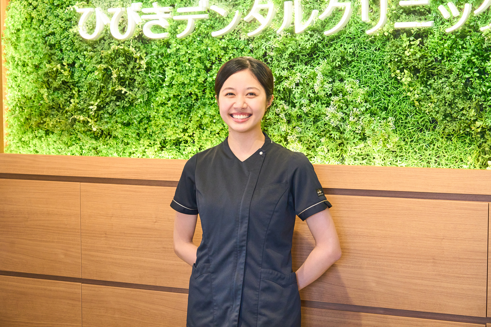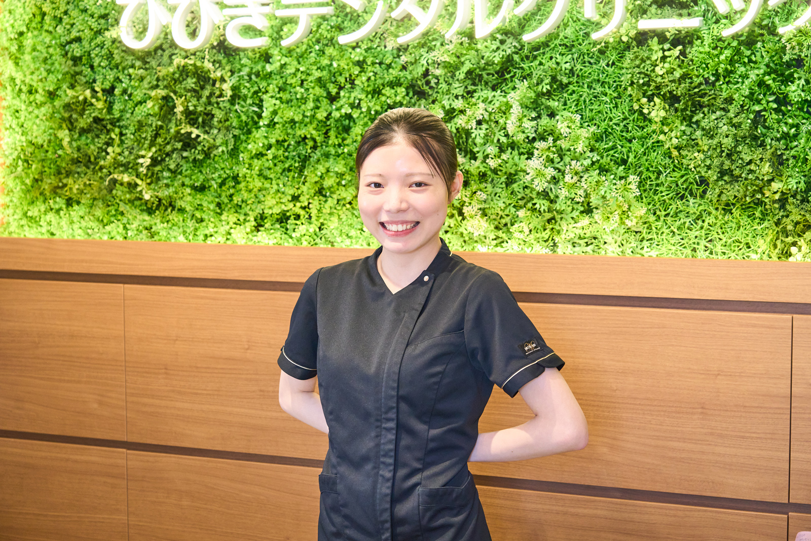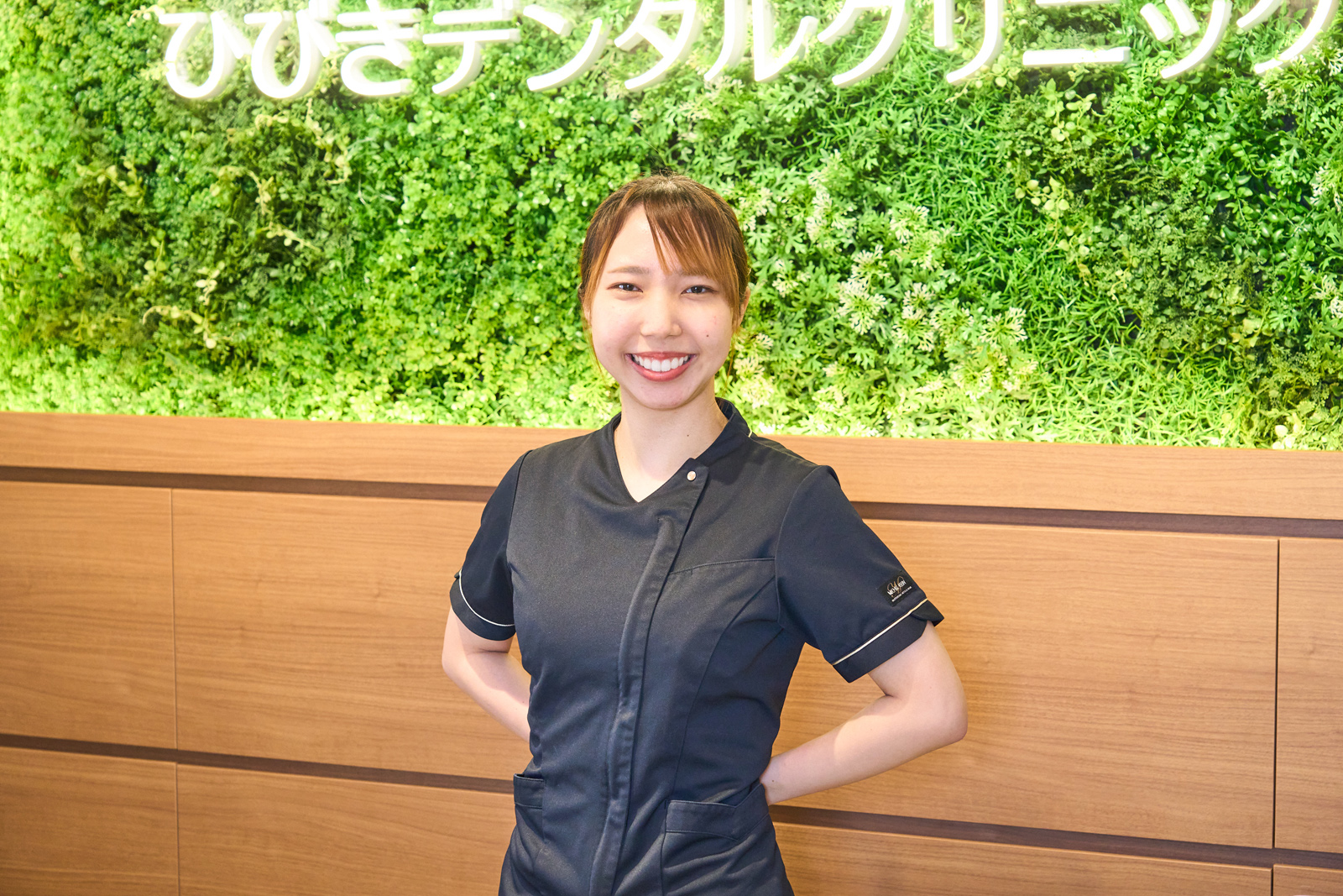 私は幼いとき、歯医者さんが怖いと感じていました。その頃のイメージとは違い、当院は優しくて明るい歯科医院です。安心して通っていただけると思います。ドクターと衛生士に負けないぐらい、歯科や保険に関するさまざまな知識を身につけようと、勉強しながら日々頑張っています。何でも気軽に聞いてくださいね。